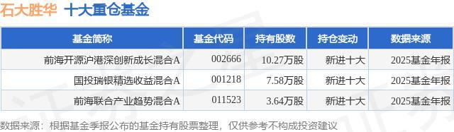 重仓石大胜华的公募基金请见下表: