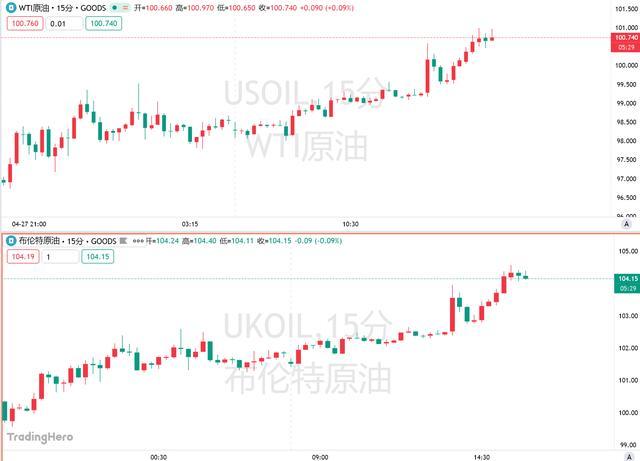 周二,国际原油价格再度上行,市场正密切追踪美伊最新谈判信号,局势不确定性令全球能源市场维持紧绷态势。WTI原油重返100美元关口。美、布两油均涨超2%。